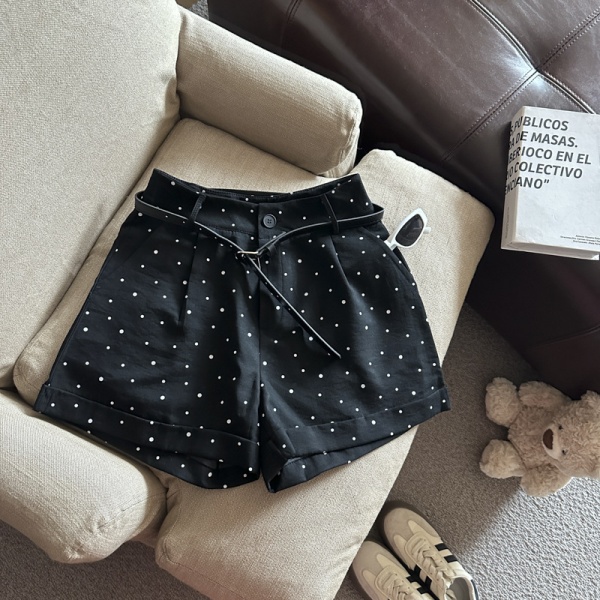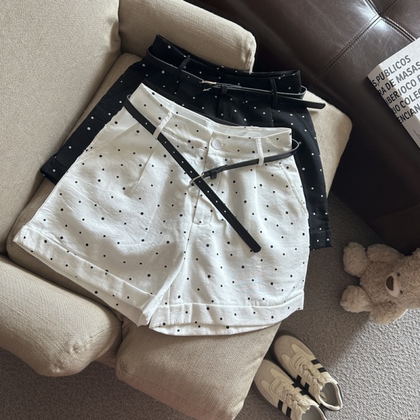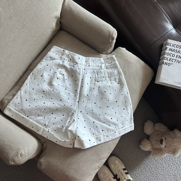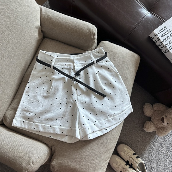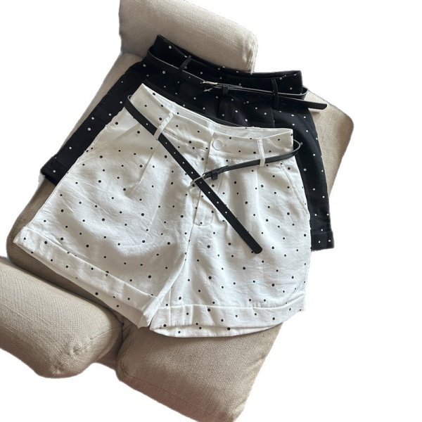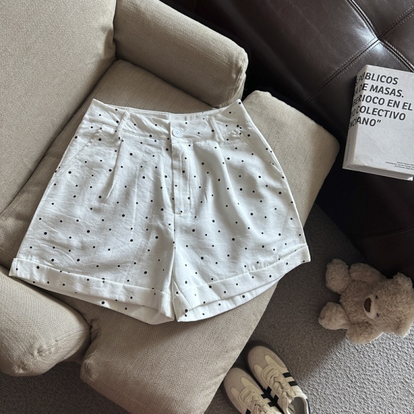 辣妹白色波点短裤夏季新款外穿薄款高腰A字显瘦休闲阔腿卷边热裤