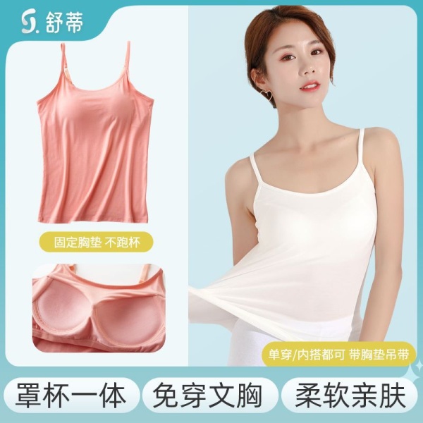 2025夏季新款莫代尔带胸垫免穿文胸背心小吊带女打底bra上衣瑜伽
