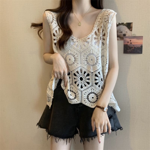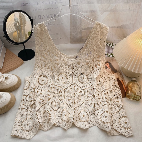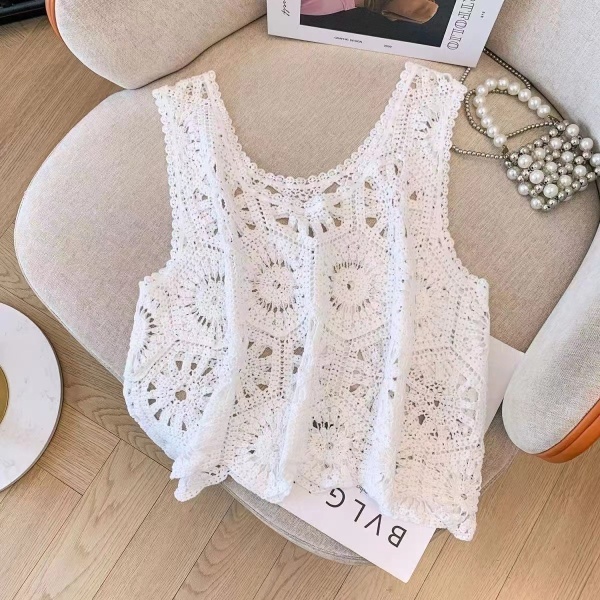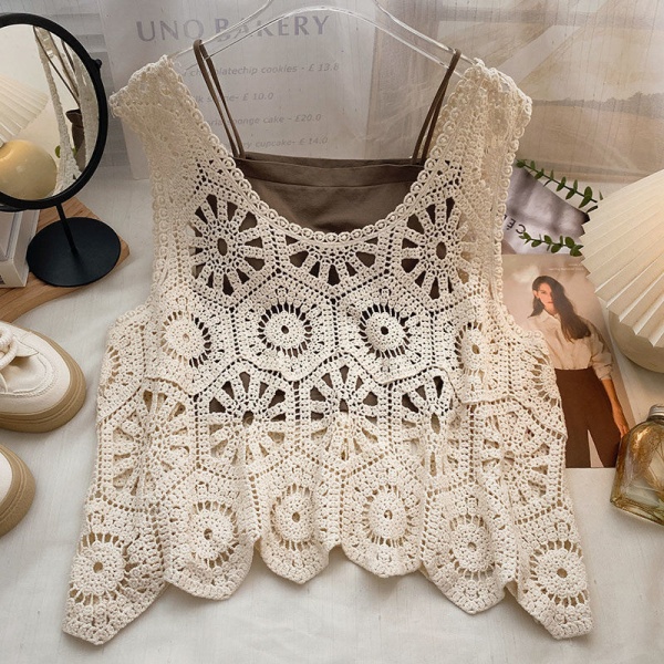 镂空钩花设计感吊带背心U领女夏季外搭宽松显瘦短款小众上衣