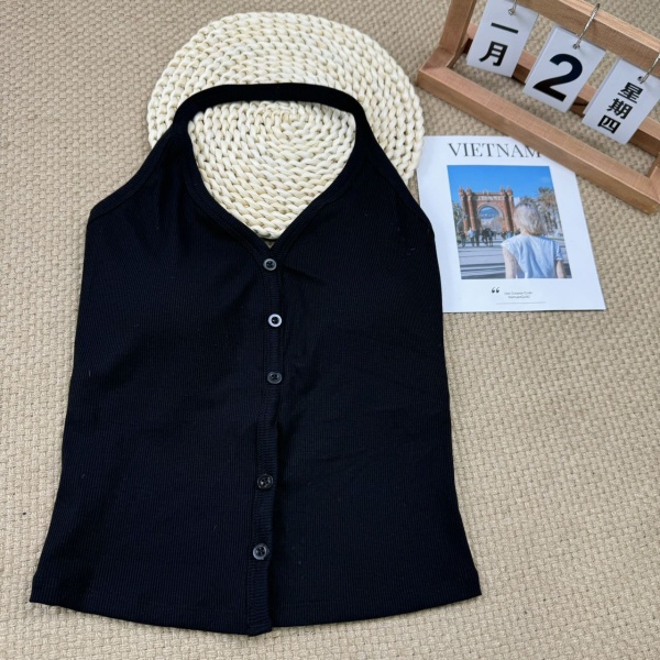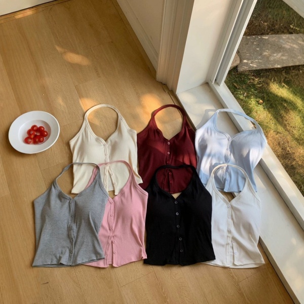 商品属性 [上市年份/季节] 2025年春季 [主面料成分] 锦纶 [主面料成分2] 锦纶 [主面料成分2含量] 80%(含)-90%(不含) [主面料成分含量] 80%(含)-90%(不含) [图案] 纯色 [弹力] 高弹 [是否跨境货源] 否 [款式] 挂脖款 [流行元素] 纽扣 [版型] 收腰型 [肩带样式] 挂脖肩带 [衣长] 普通款(50cm<衣长≤65cm) [面料名称] 棉 [风格] 街头风 [风格类型] 街头潮人