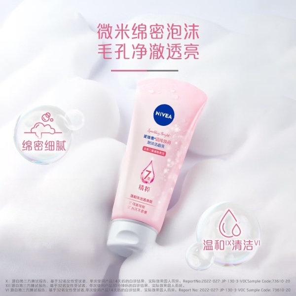 商品属性 [产品名称] 妮维雅丝柔焕亮泡沫洁面乳 [产地] 上海 [保质期] 3年 [化妆品功效] 其他功效 [品牌类型] 欧美品牌 [成分] 水 [是否跨境出口专供货源] 否 [是否进口] 否 [特殊用途化妆品] 否 [生产许可证号] 沪妆20160022 [起泡程度] 泡沫洁面 [适用人群] 女士,男士 [适用肤质] 中性,油性,干性 [非特化妆品备案证号] 沪G妆网备字2022013042