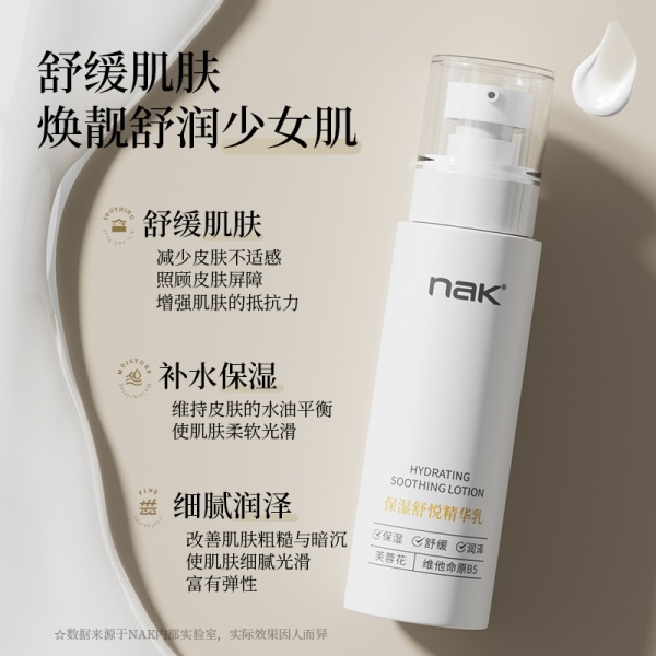 商品属性 [产品名称] nak精华乳 [产地] 广东 [保质期] 3年 [化妆品功效] 控油,补水保湿,滋润 [品牌类型] 国货品牌 [是否跨境出口专供货源] 否 [是否进口] 否 [特殊用途化妆品] 否 [生产许可证号] 粤妆20160666 [适用人群] 普通人群 [适用肤质] 中性,油性,干性 [非特化妆品备案证号] 粤G妆网备字2024356652