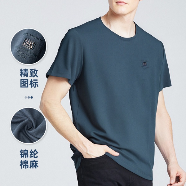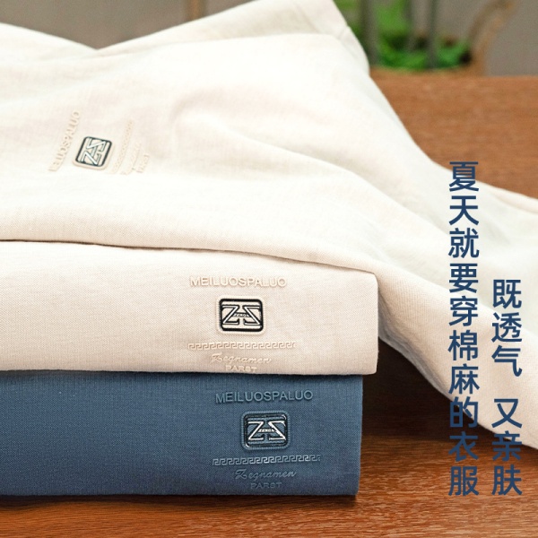 男式男装T恤夏季吸湿透气棉麻超薄圆领短袖中老年男装爸爸装