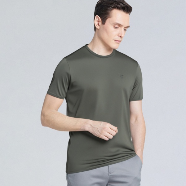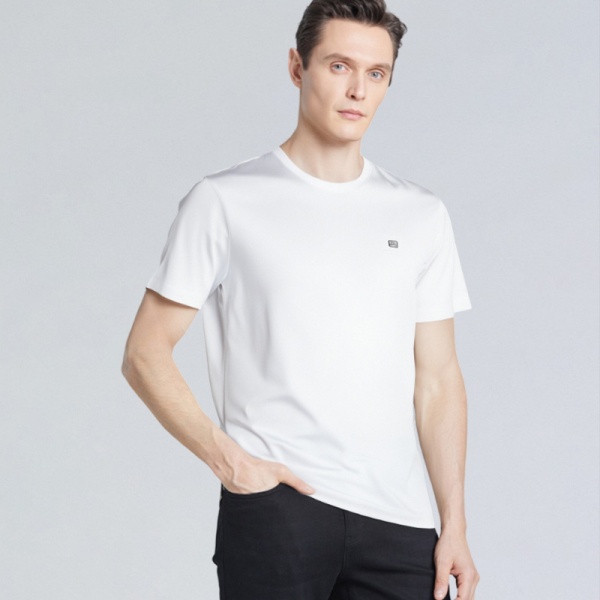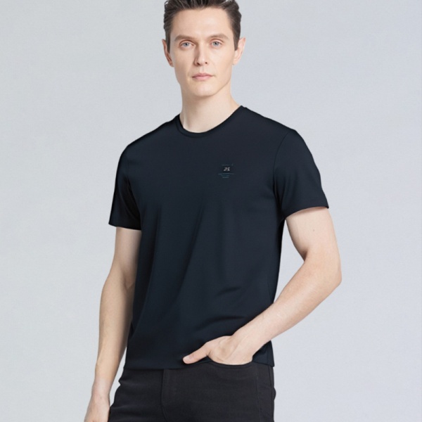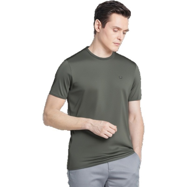 男式男装桑蚕丝T恤舒适天丝圆领短袖中老年男装爸爸装夏