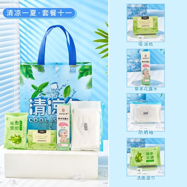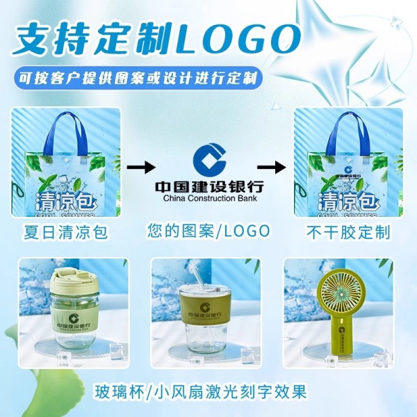 商品属性 [产品名称] 防暑降温包清凉一夏伴手礼盒实用小礼品夏季大礼包送员工客户定制 [定制logo] 支持 [是否IP授权] 否 [是否专利货源] 否 [是否属于礼品] 是,商务礼品 [有可授权的自有品牌] 否 [材质] 无纺布 [类别] 商务礼品套装 [自由组合] 支持 [送礼用途] 广告礼品,促销赠品,会议礼品,福利礼品,节庆礼品,嘉奖纪念,公关礼品,其他 [适用节日] 父亲节,母亲节,教师节,七夕,万圣节,复活节,国庆节,儿童节,妇女节,其他 [适用送礼关系] 晚辈,情侣,夫妻,同事,朋友,长辈,孩子,同学,恩师,其他 [适用送礼场合] 满月,旅游纪念,毕业,乔迁,派对聚会,探病慰问,其他 [风格] 现代简约