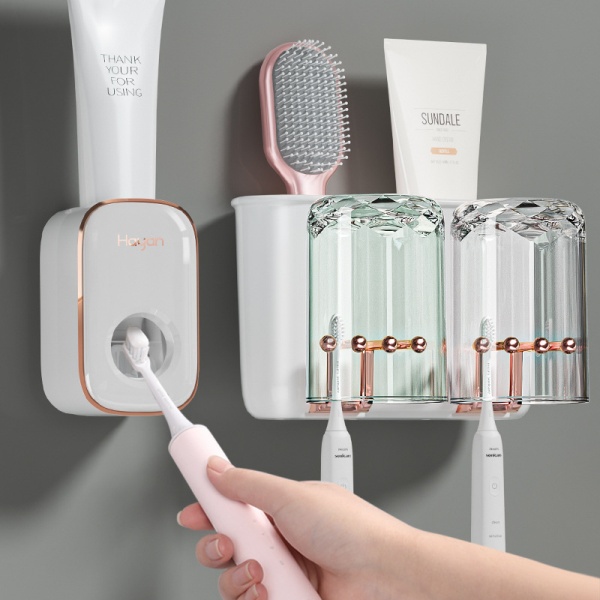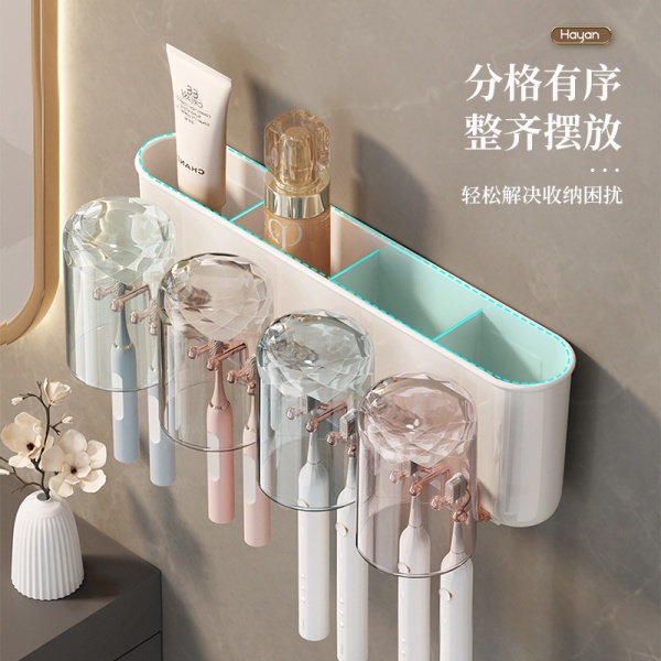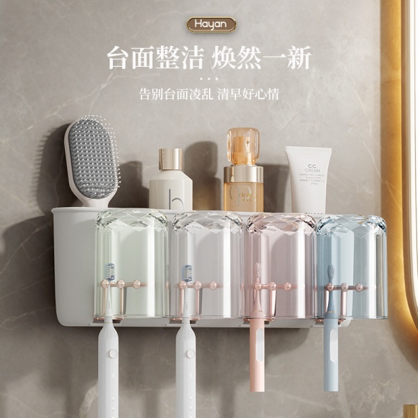HAYAN好用牙刷架壁挂牙刷置物架免打孔高端漱口杯家居日用品爆款