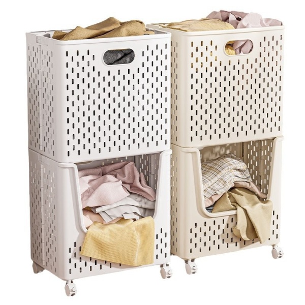 家居折叠收纳篮子脏衣篮带滑轮多功能手提脏衣篓家用浴室杂物收纳