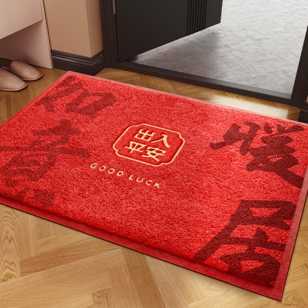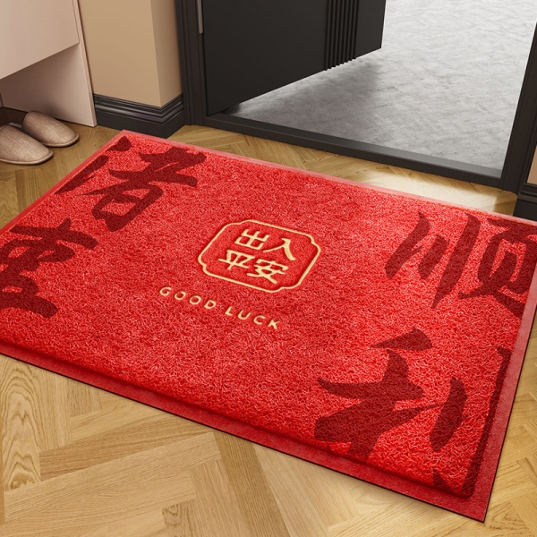 出入平安入户地垫丝圈红色高级感进门防滑垫门口玄关耐磨蹭脚垫子