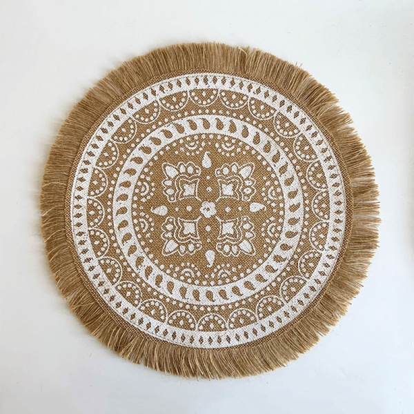ins风简约餐具垫家居圆形编织垫餐厅复古黄麻装饰垫拍摄道具杯垫