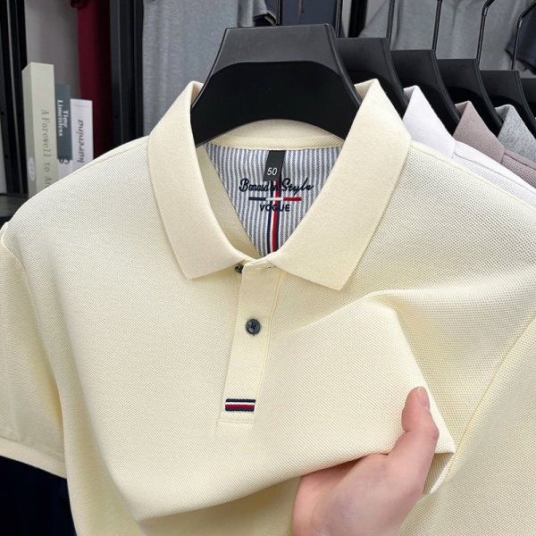 商品属性 [上市年份/季节] 2025夏季 [主面料成分] 棉 [主面料成分的含量] 96%及以上 [厚薄] 普通 [原创设计货源] 否 [图案] 纯色 [库存类型] 整单 [有无质检报告] 否 [服装款式细节] 不对称 [材质功能] 可机洗,高弹,色牢度高 [淘货类别] 时尚都市(24-35岁) [版型] 合体型 [特殊工艺] 印花/印染 [纯棉T恤男] 跨境polo衫男 [翻领t恤男] 短袖男t [翻领短袖男] 短袖polo衫男 [袖长] 短袖 [货源类别] 现货 [质检报告编号] 01 [适合季节] 夏季 [适用场景] 休闲 [面料名称] 丝光棉 [风格] 轻商务