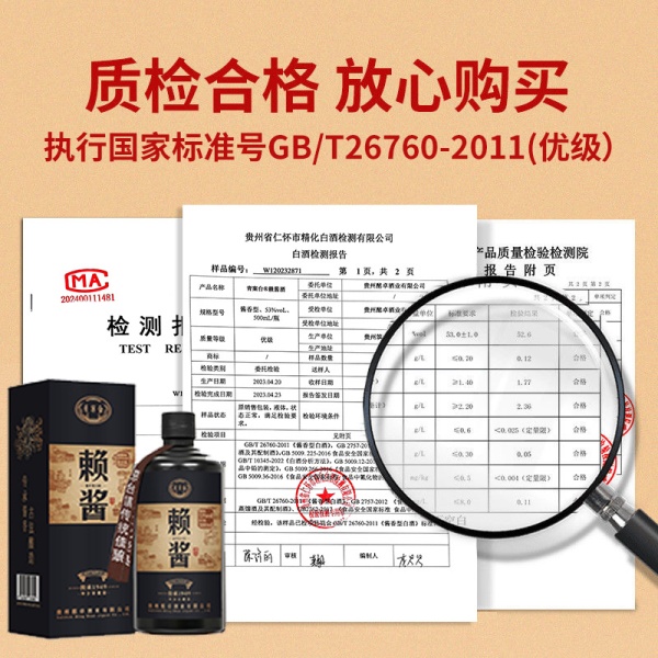 商品属性 [OEM] 是 [代发] 一件代发 [保质期] 99 [储存条件] 常温 [储藏方法] 密封 [净重(规格)] 500 [包装方式] 礼盒装 [原产地] 贵州 [原料与配料] 高粱,小麦,水 [商品条形码] 见包装 [度数] 53 [是否礼盒装] 是 [是否进口] 否 [热卖月份] 全年 [生产厂家] 筑音 [生产日期] 见包装 [生产许可证编号] SC11552012310782