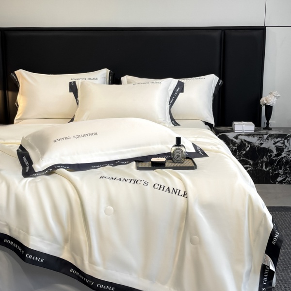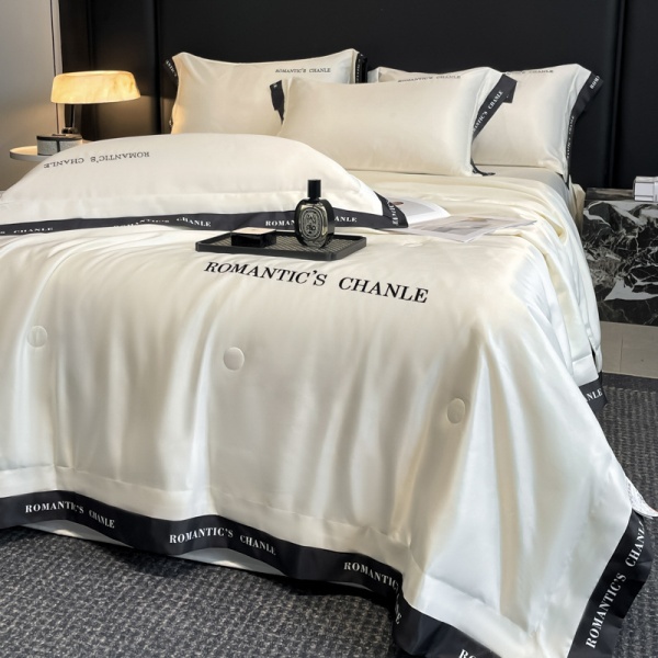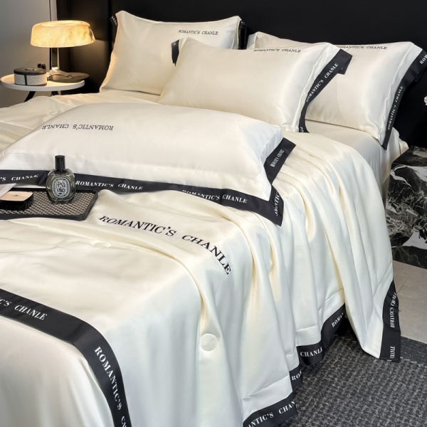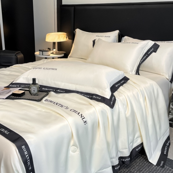 夏季轻奢水洗冰丝刺绣夏被四件套可机洗丝滑空调被床单款床上用品