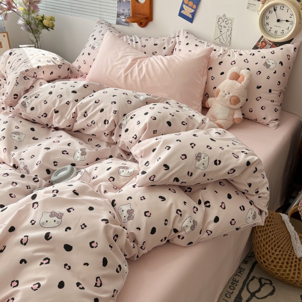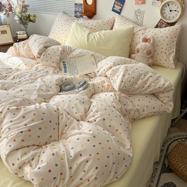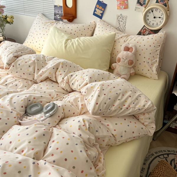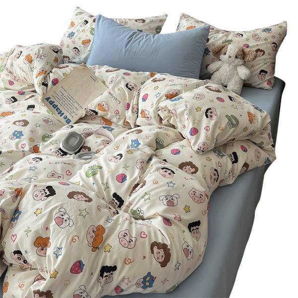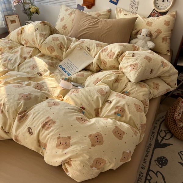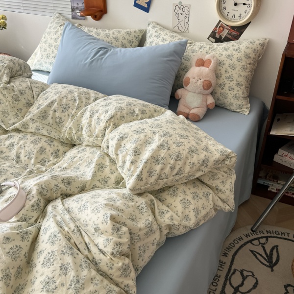 空调被薄被皱皱纱韩系可爱夏被小清新双拼印花可水洗超柔软四件套