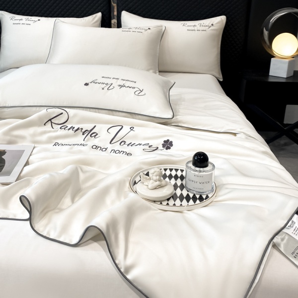 绣花款夏季轻奢水洗天丝凉感空调被四件套可机洗水洗家用夏被礼品