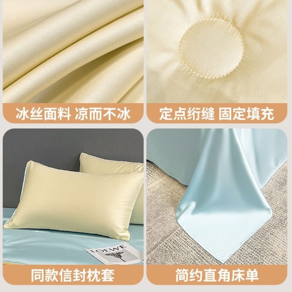 卡通刺绣小熊冰丝夏凉被床上四件套夏季丝滑裸睡空调被子床单床品