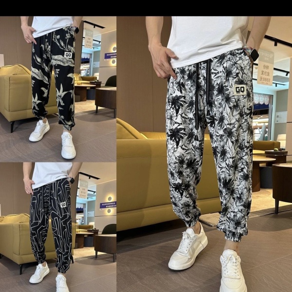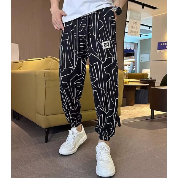 商品属性 [上市年份/季节] 2023年夏季 [主要下游平台] ebay,亚马逊,wish,速卖通,独立站,LAZADA [主要销售地区] 非洲,欧洲,南美,东南亚,北美,东北亚,中东 [主面料成分] 聚酯纤维(涤纶) [主面料成分的含量] 70 [厚薄] 薄款 [原创设计货源] 否 [图案] 条纹 [工艺] 印花/印染 [库存类型] 整单 [弹力] 微弹 [是否库存] 是 [是否有腰带] 无腰带 [是否跨境出口专供货源] 是 [有可授权的自有品牌] 否 [有无质检报告] 否 [材质功能] 透气 [款式] 束脚裤 [款式细节] 印花 [淘货类别] 青春流行(18-24岁) [类别] 运动休闲裤 [腰型] 中腰 [裤型] 直筒型 [裤脚口款式] 直筒 [裤长] 九分裤 [裤门襟] 系绳闭襟 [货源类别] 现货 [适合人群] 青少年 [适合季节] 夏季 [适用场景] 休闲 [面料] 弹力面料 [面料名称] 涤纶 [风格] 简约
