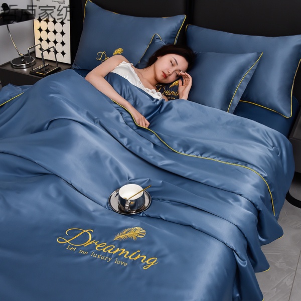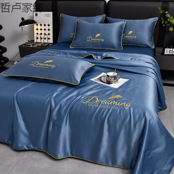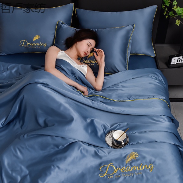 床单单件空调被子四季通用水洗冰丝夏凉被刺绣夏被四件套单人轻奢