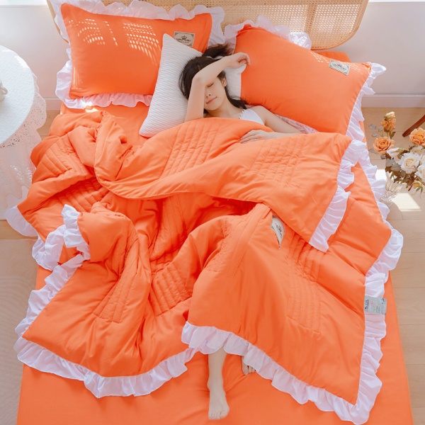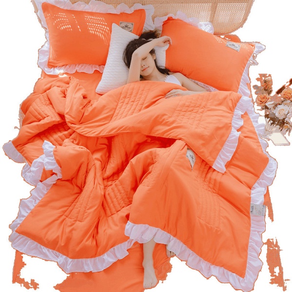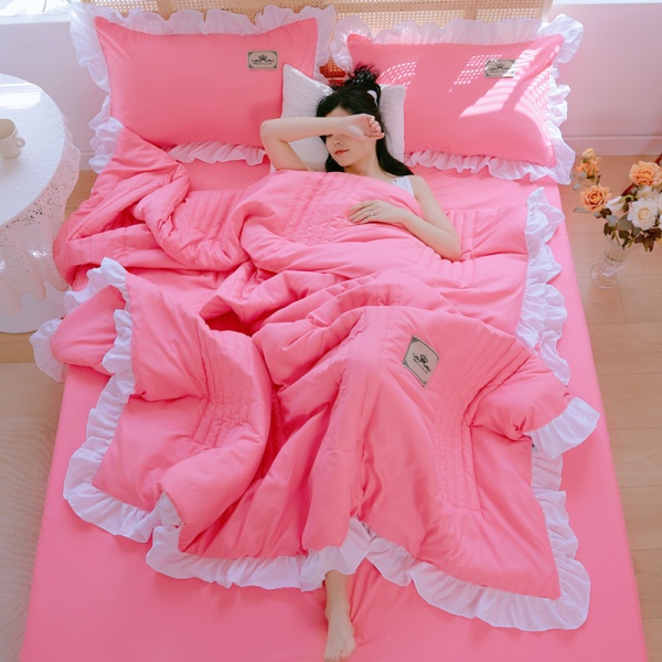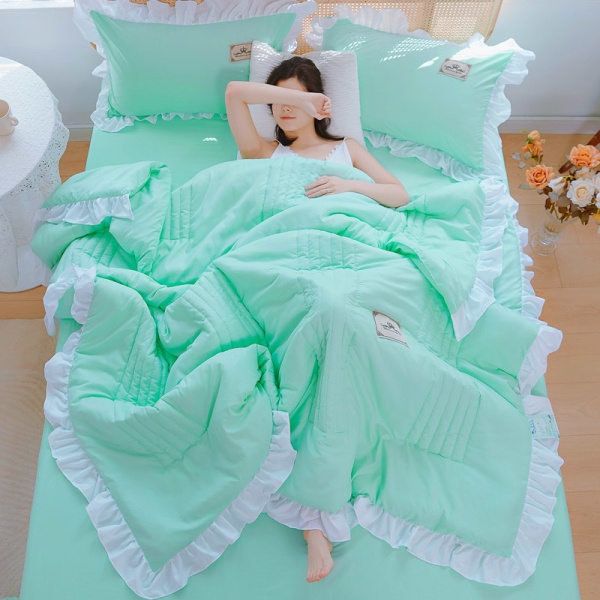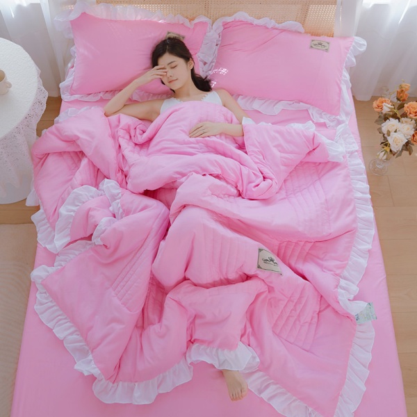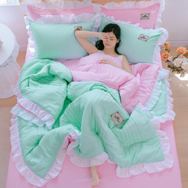 韩版花边夏被空调水洗棉夏凉三件套四件套单双人薄被子可机洗