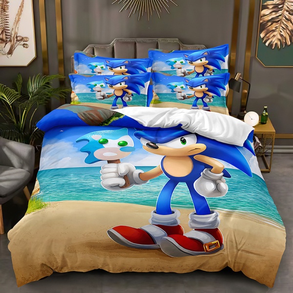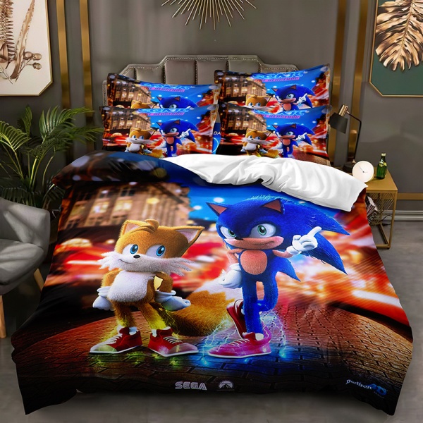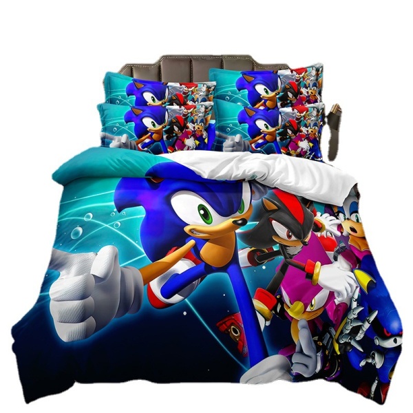跨境家纺亚马逊速卖通电音小子索尼克三件套床品数码印花被套套件