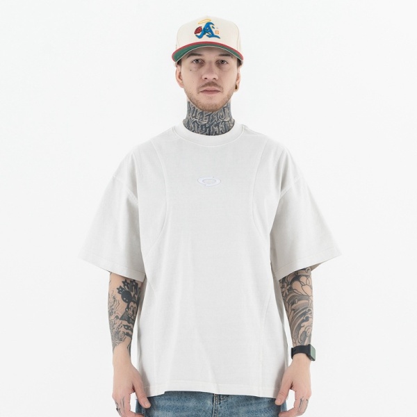 商品属性 [上市年份/季节] 2025夏季 [主面料成分] 棉 [主面料成分的含量] 100 [克重] 300g [印花主题] 几何图案 [厚薄] 普通 [原创设计货源] 是 [图案] 字母 [工艺] 刺绣/绣花 [是否跨境出口专供货源] 否 [是否连帽] 不连帽 [有无质检报告] 否 [材质功能] 其他 [款式] 套头 [款式细节] 印花 [淘货类别] 青春流行(18-24岁) [版型] 宽松型 [类别] T恤 [袖型] 落肩袖 [袖长] 短袖 [误差范围] 3CM [货源类别] 现货 [适合人群] 青年 [适合季节] 夏季 [适用场景] 休闲 [面料名称] 棉 [领口形状] 圆领 [领型] 无领 [风格] 街潮