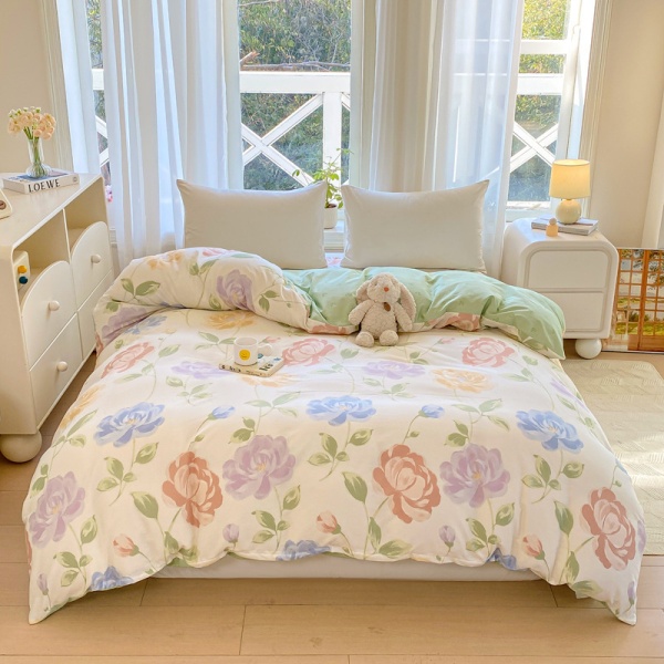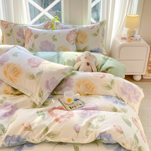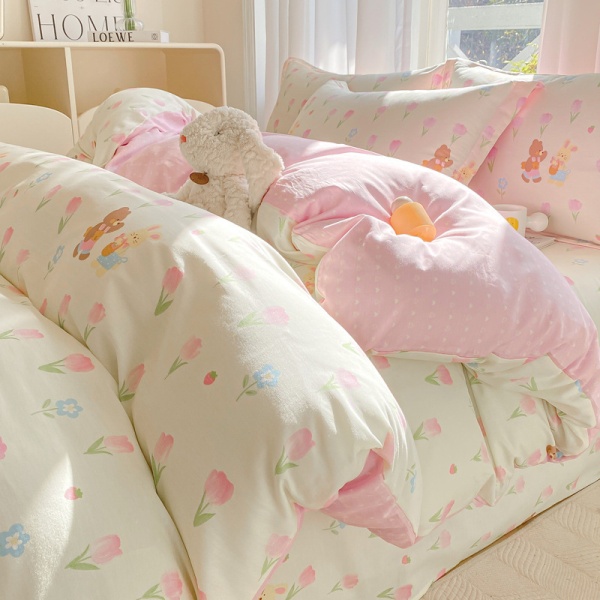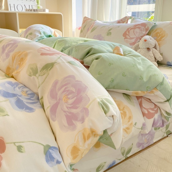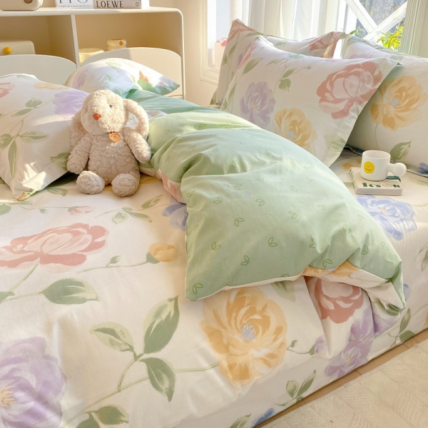 小清新床上四件套100全棉印花纯棉被套床单宿舍三件套床上用品