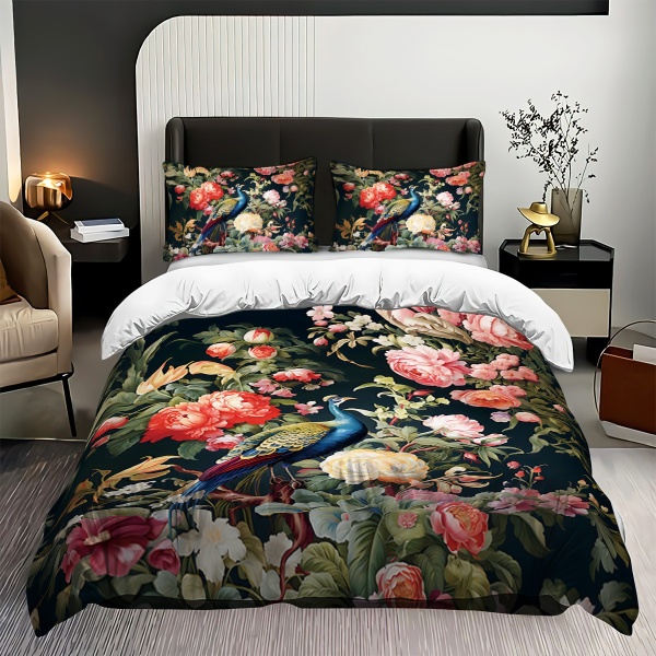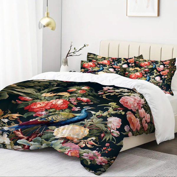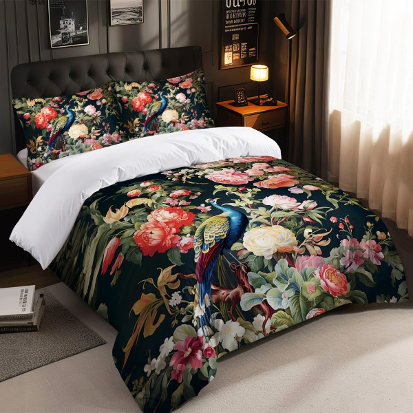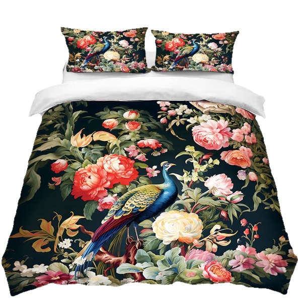 出口被套三件套孔雀3D数码印花被套套件床上用品外贸家纺POD定制