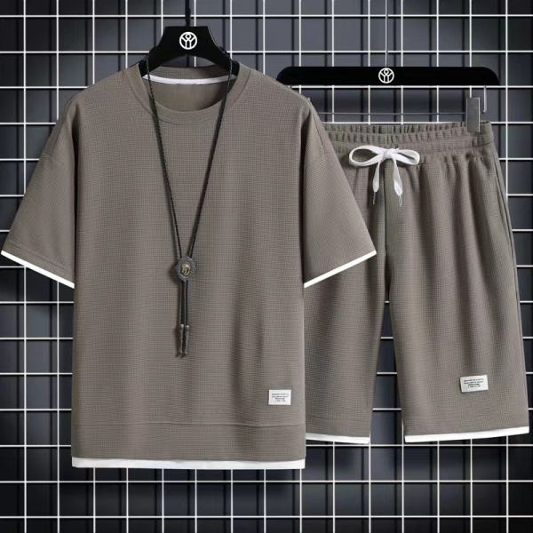 商品属性 [1] 运动 [2] 日常 [3] 短袖短裤套装 [上市年份/季节] 2025夏季 [上衣款式] T恤 [上衣袖长] 短袖 [主要下游平台] ebay,亚马逊,wish,速卖通,独立站,LAZADA,其他 [主要销售地区] 非洲,欧洲,南美,东南亚,北美,东北亚,中东,其他 [主面料成分] 聚酯纤维(涤纶) [主面料成分的含量] 100 [厚薄] 薄款 [原创设计货源] 否 [库存类型] 整单 [是否跨境出口专供货源] 是 [是否连帽] 不连帽 [有可授权的自有品牌] 否 [有无质检报告] 否 [淘货类别] 青春流行(18-24岁) [裤长] 短裤 [货源类别] 现货 [质检报告编号] / [适合季节] 夏季 [适用场景] 休闲 [面料名称] 牛奶丝 [风格] 中性