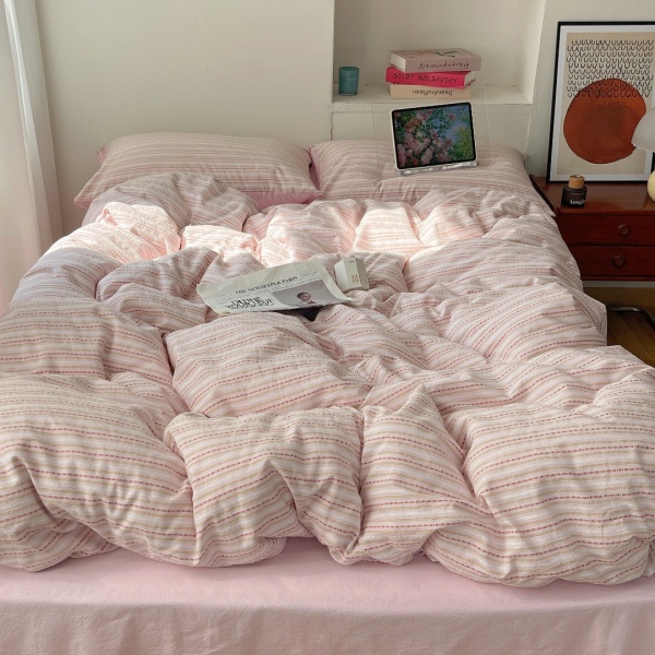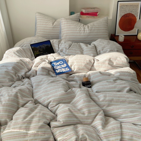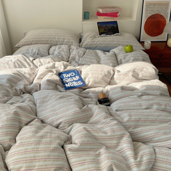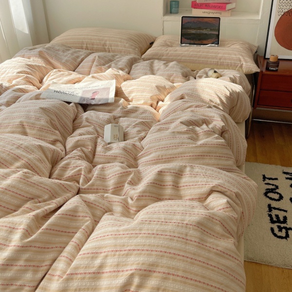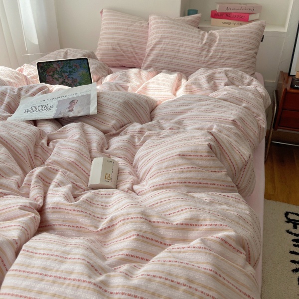 春秋条纹全棉四件套色织提花水洗纯棉被套床单宿舍三件套床上用品