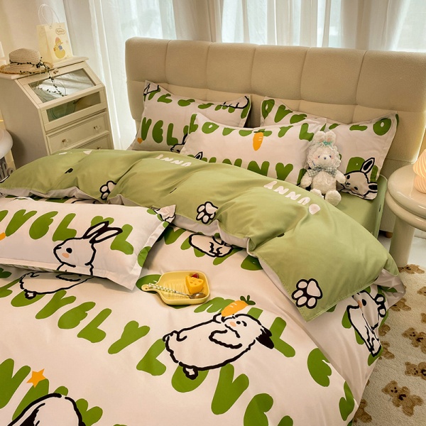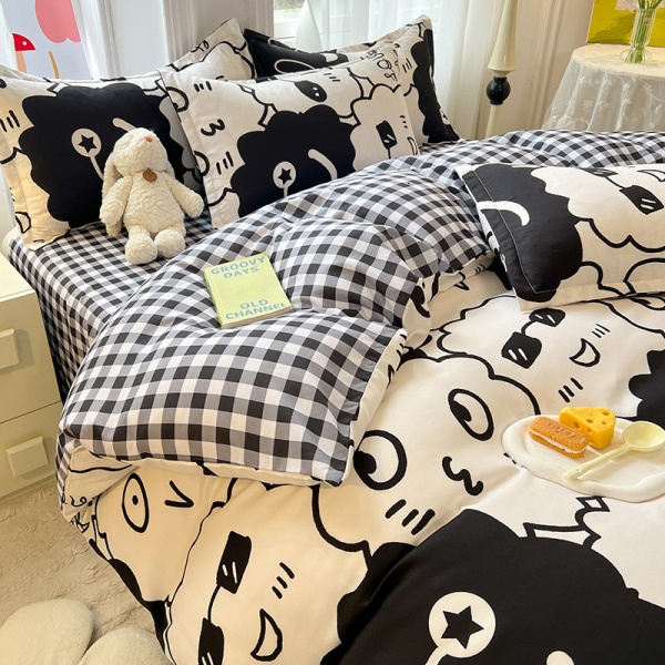卡通风床上用品单人女学生宿舍三件套被单4件套亲肤水洗棉四件套