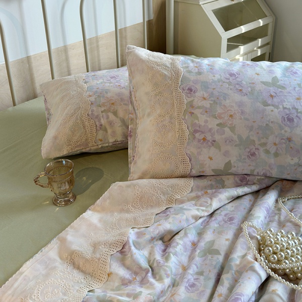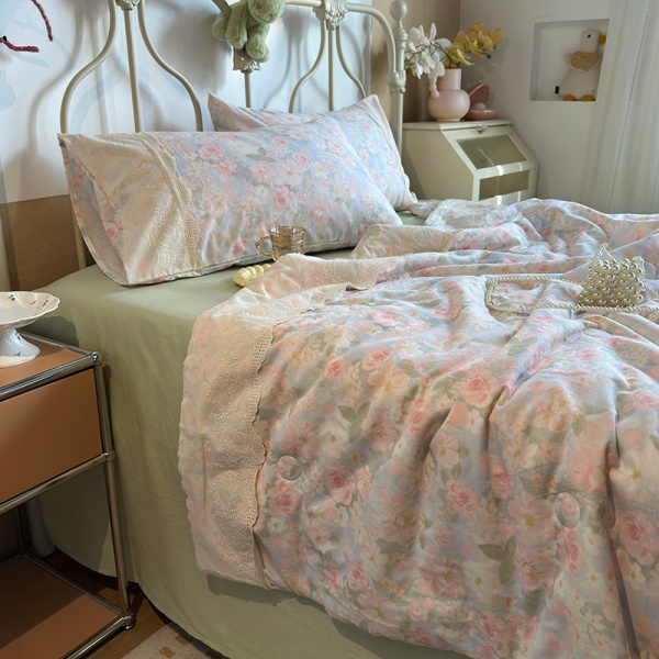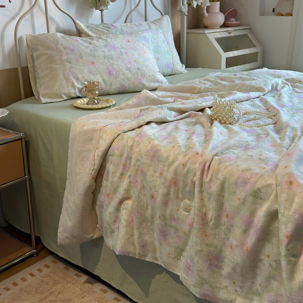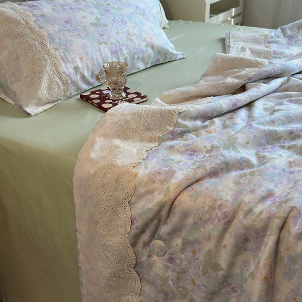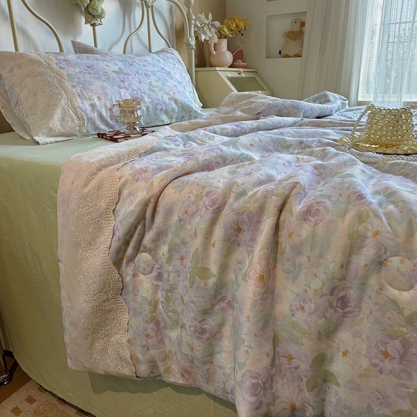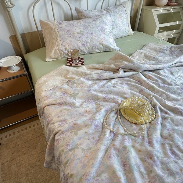 夏季新品母婴A类全棉双层纱法式大花边夏被床单四件套纯棉空调被