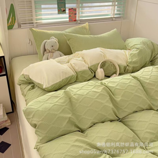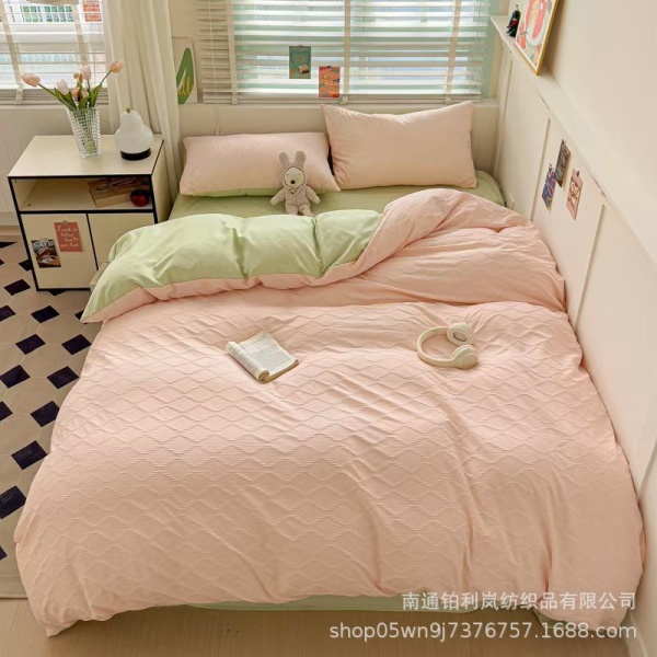 四件套夏天床上用品床单针织提花水洗棉被套罩四季宿舍三件套纯棉
