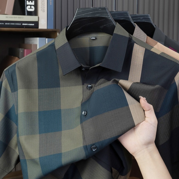 阿里虎男装潮流格子高端大牌衬衫男商务休闲短袖新款免烫抗皱上衣