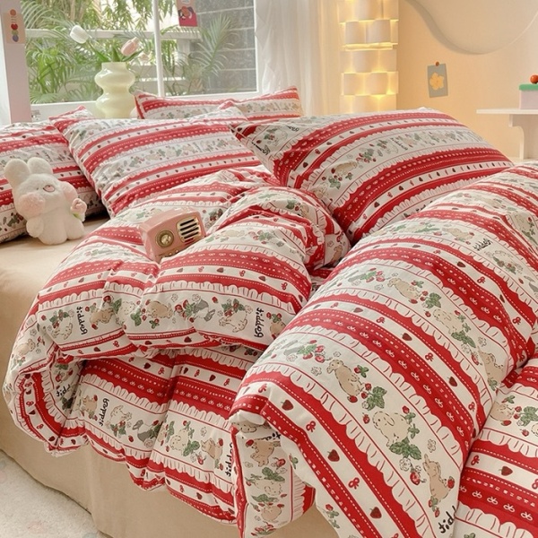 100%全棉床上用品四件套纯棉被套床单人三件套学生宿舍被单