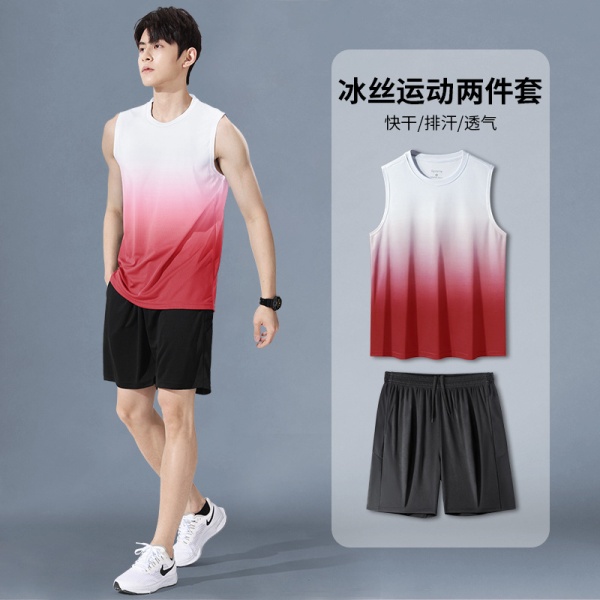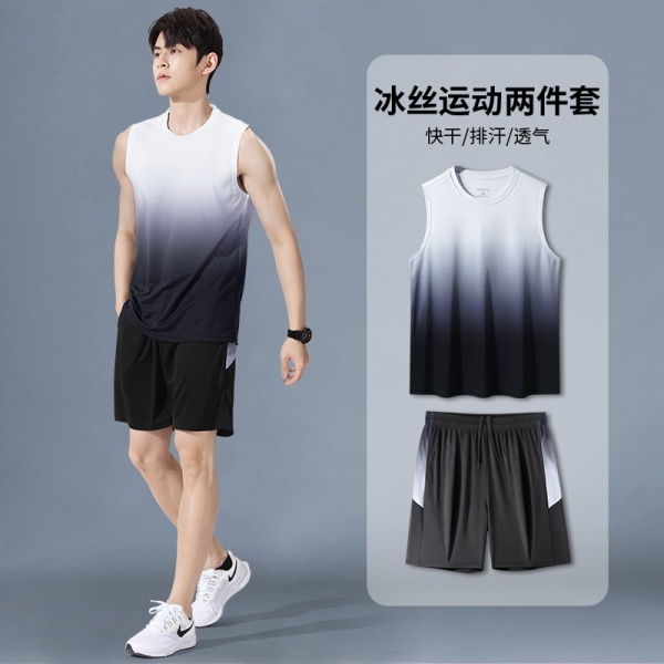 运动套装男速干衣冰丝背心短裤跑步夏季训练健身球服外贸跨境批发