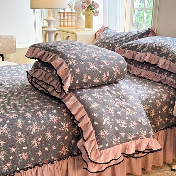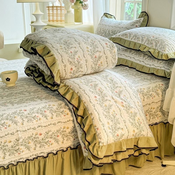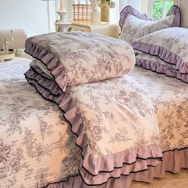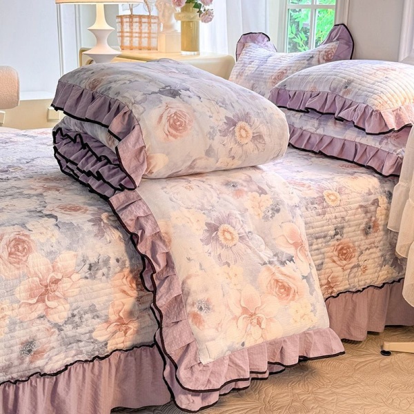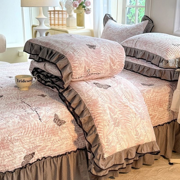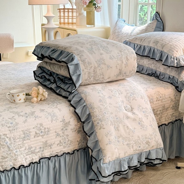 a类韩版提花夹棉床盖夏被四件套可机洗空调被夏季双人薄被子4