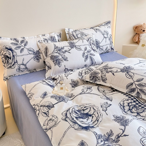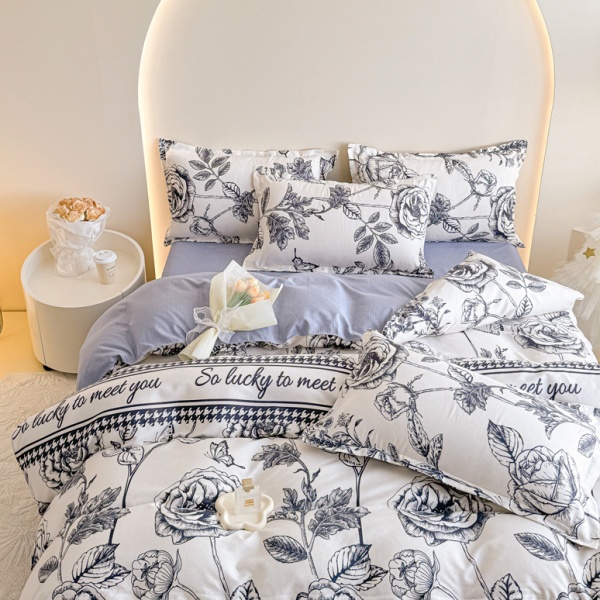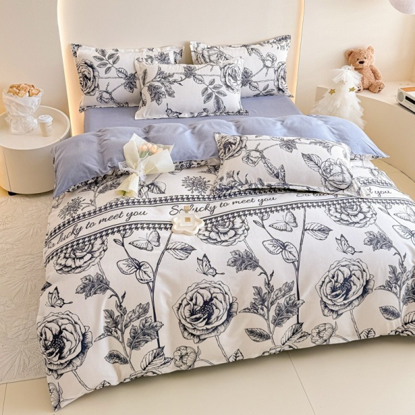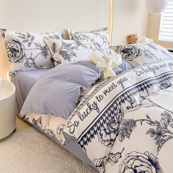 A类母婴级ins裸睡四件套清新全水洗棉床单被套床笠款纯棉宿舍三件