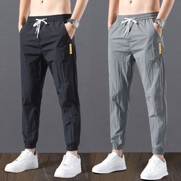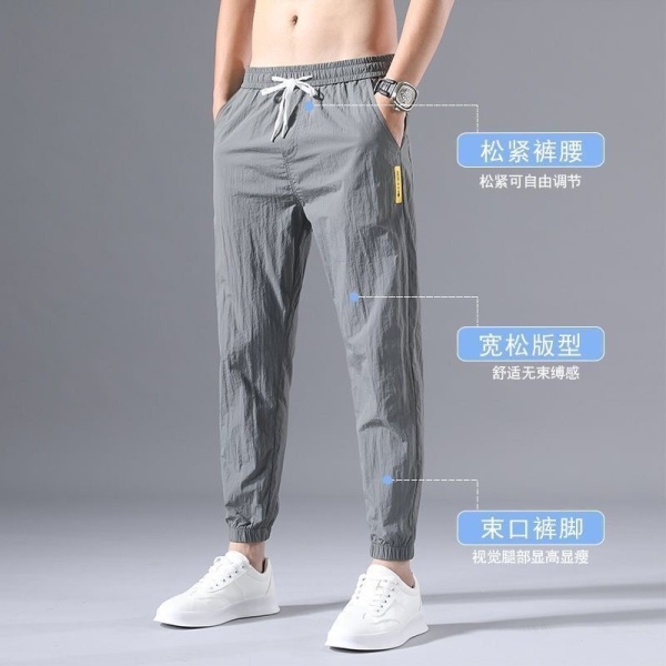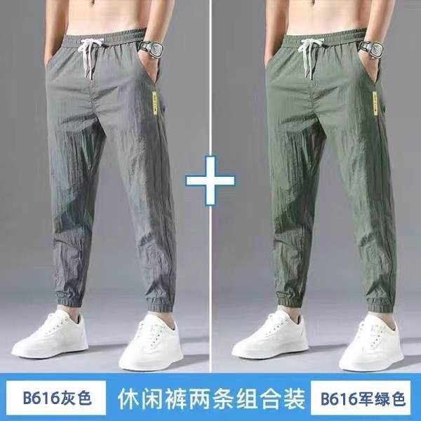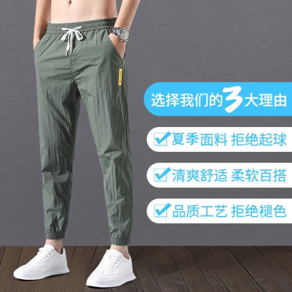 商品属性 [上市年份/季节] 2024年夏季 [主面料成分] 聚酯纤维(涤纶) [主面料成分的含量] 100 [厚薄] 薄款 [原创设计货源] 否 [库存类型] 整单 [弹力] 微弹 [是否库存] 是 [是否有腰带] 有腰带 [是否跨境出口专供货源] 是 [有可授权的自有品牌] 否 [有无质检报告] 否 [材质功能] 其他 [款式] 束脚裤 [淘货类别] 青春流行(18-24岁) [类别] 运动休闲裤 [腰型] 中腰 [裤型] 宽松型 [裤长] 九分裤 [裤门襟] 系绳闭襟 [误差范围] 1-3cm [货源类别] 现货 [适合人群] 青年 [适合季节] 夏季 [适用场景] 运动 [面料名称] 聚酯纤维 [风格] 运动休闲
