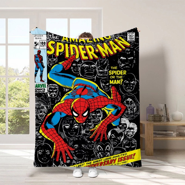 亚马逊热卖漫威蜘蛛侠跨境法莱绒毛毯一件代发卡通印花加厚毯子数
