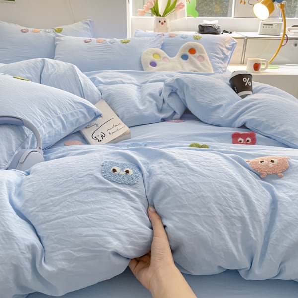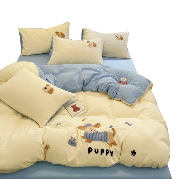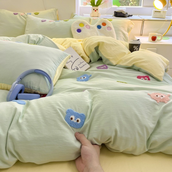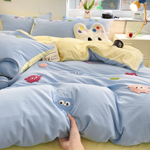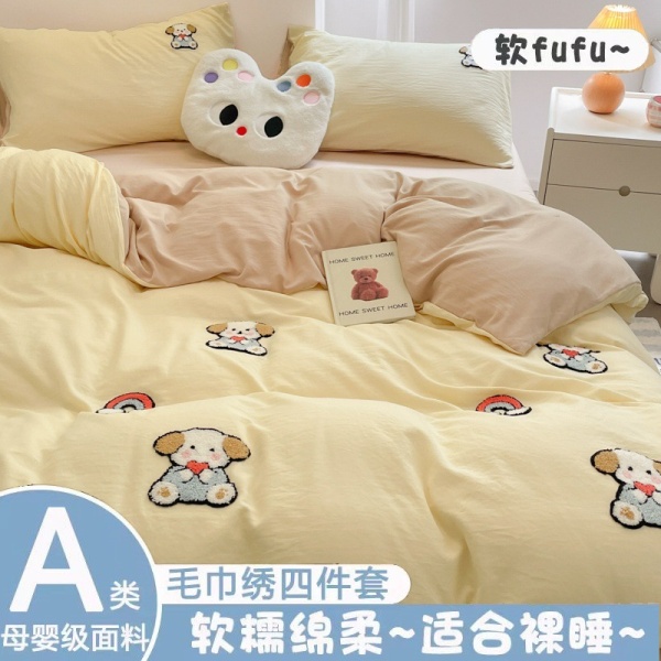 A类床品四件套纯色棉卡通毛巾绣被套亲肤水洗棉学生宿舍可爱套件