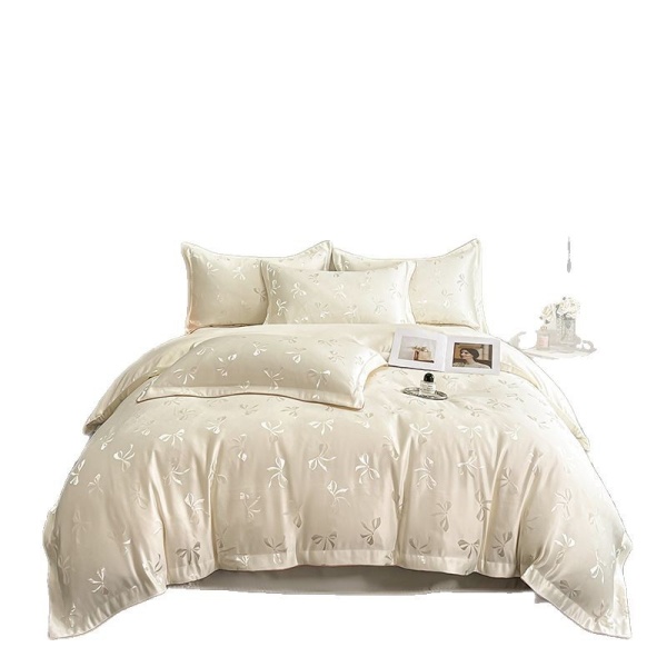 夏季提花水洗天丝四件套蝴蝶结冰丝裸睡丝滑被套高级感床品三件套