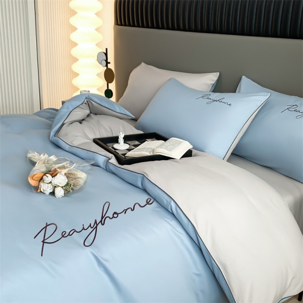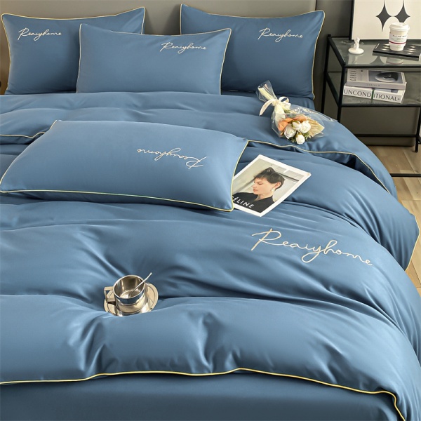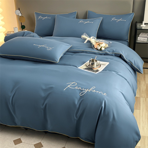 新款水洗棉刺绣四件套细腻亲肤水洗棉活性印染四件套宿舍三件套