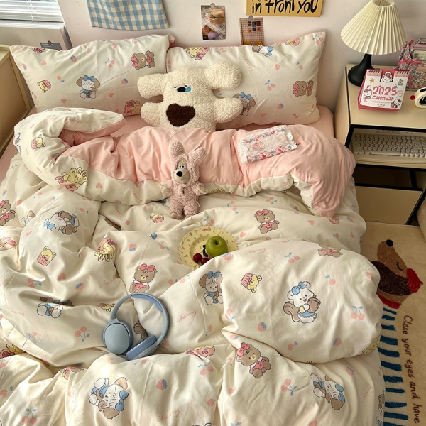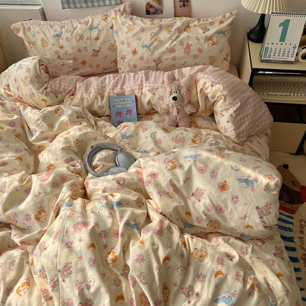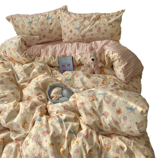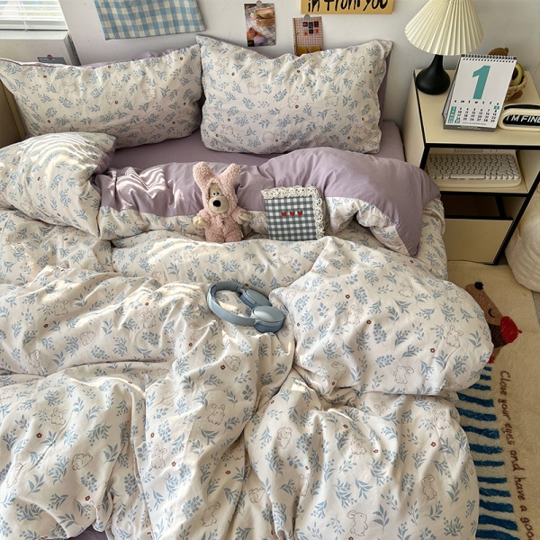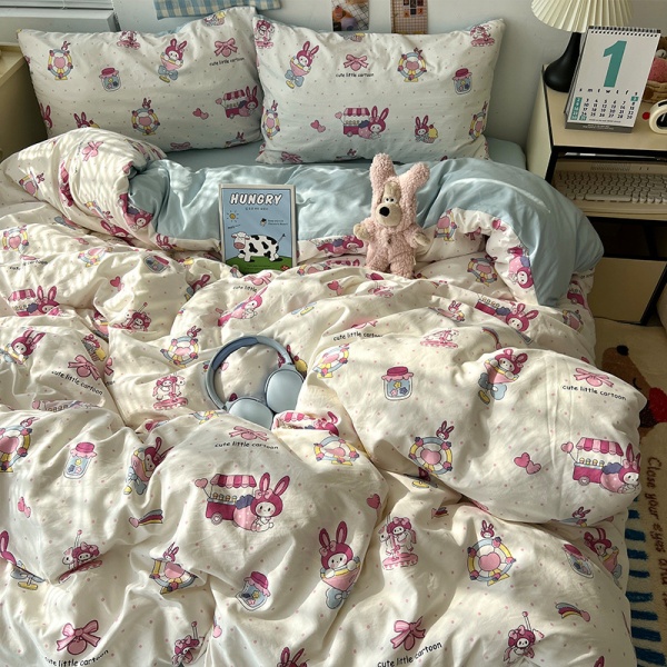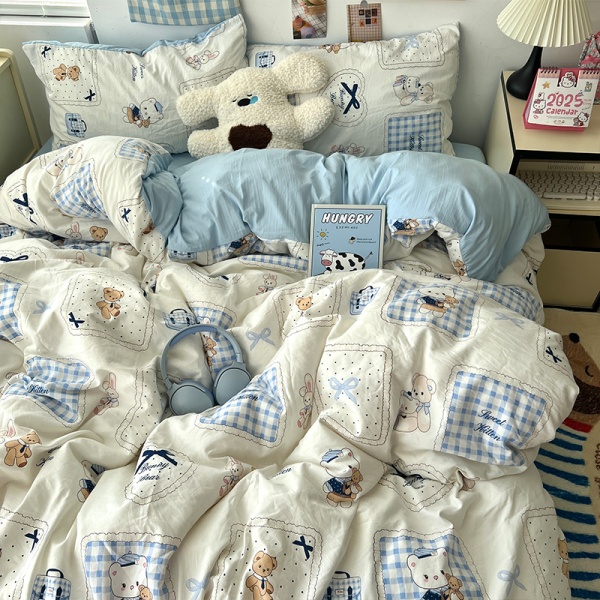A类母婴级水洗棉四件套床上用品床单被套被罩床笠学生宿舍三件套4