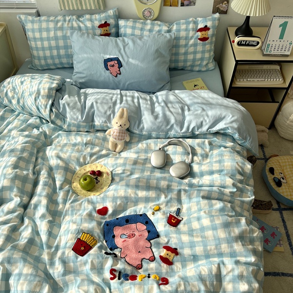 A类母婴级床上用品四件套纯棉水洗棉床单被套床笠学生宿舍三件套