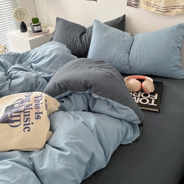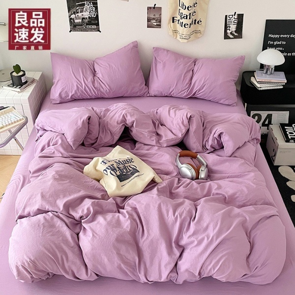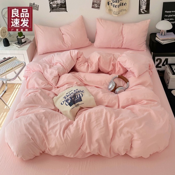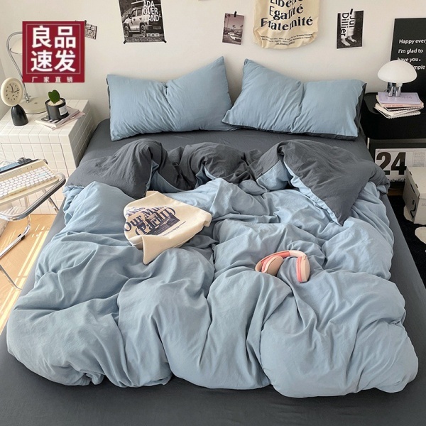 南通ins风裸睡纯棉四件套A类水洗棉纯色双拼被套床笠款宿舍三件套