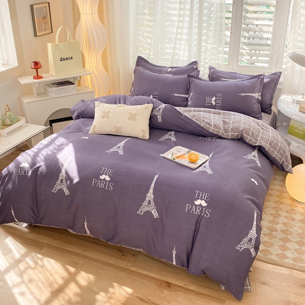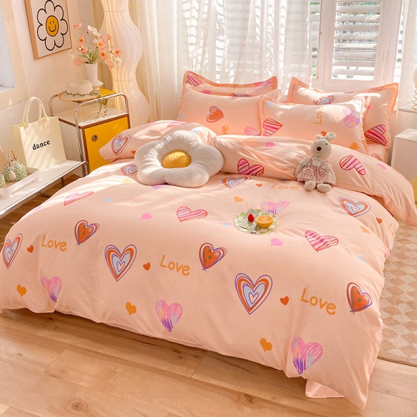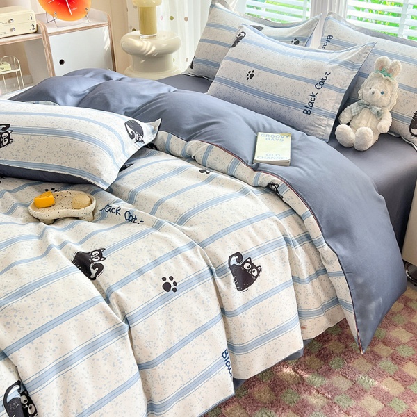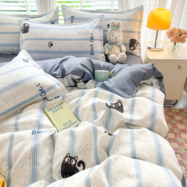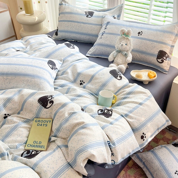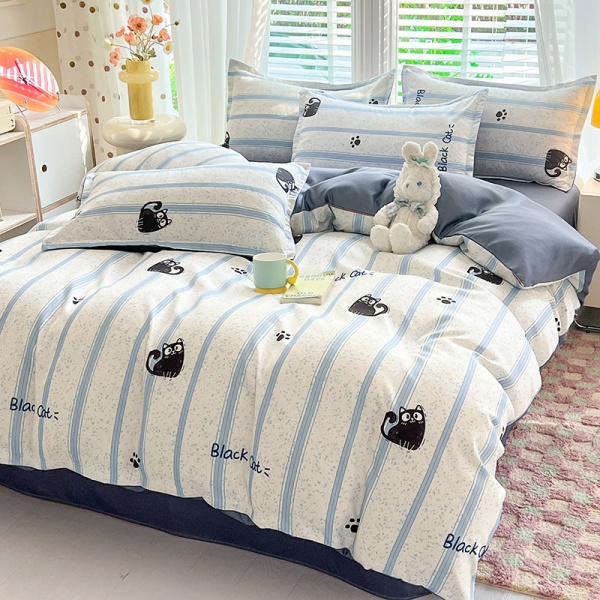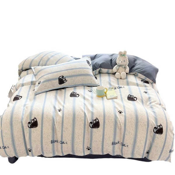 床上四件套纯水洗棉全被套罩宿舍单人学生床品床单条纹猫三件套