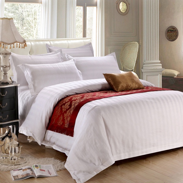 纯棉床品四件套精梳棉三分缎条床单被套枕套家纺民宿酒店布草批发