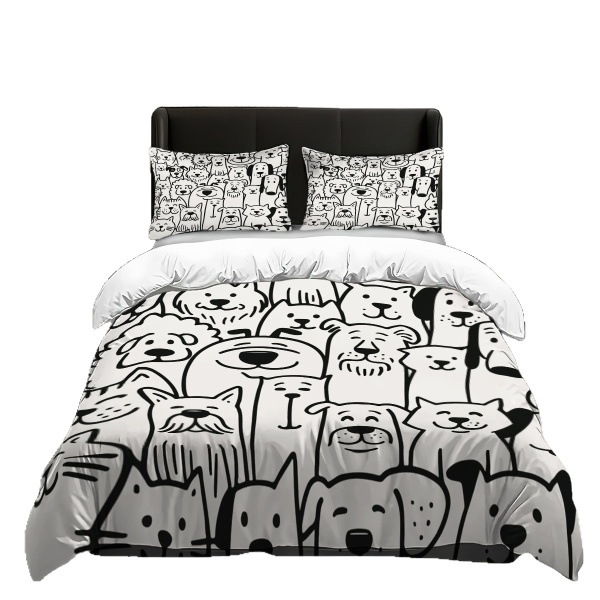 商品属性 [主要下游平台] ebay,亚马逊,wish,速卖通,独立站,LAZADA [主要销售地区] 非洲,欧洲,南美,东南亚,北美,东北亚,中东 [产品等级] 合格品 [克重] 90gsm [加工定制] 是 [印染工艺] 数码印花 [图案] 其他/other [是否一般纳税人] 是 [是否支持一件代发] 支持 [是否跨境出口专供货源] 是 [有可授权的自有品牌] 否 [材质] 化纤 [款式] 被套*1+枕套*2 [织造工艺] 包边,印花,磨毛,平纹,色织 [适用床尺寸] 其它 [颜色分类] 花色 [风格] 卡通