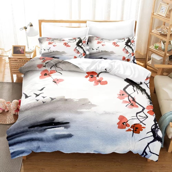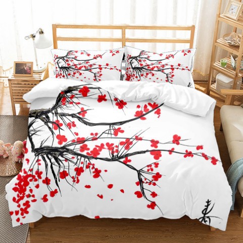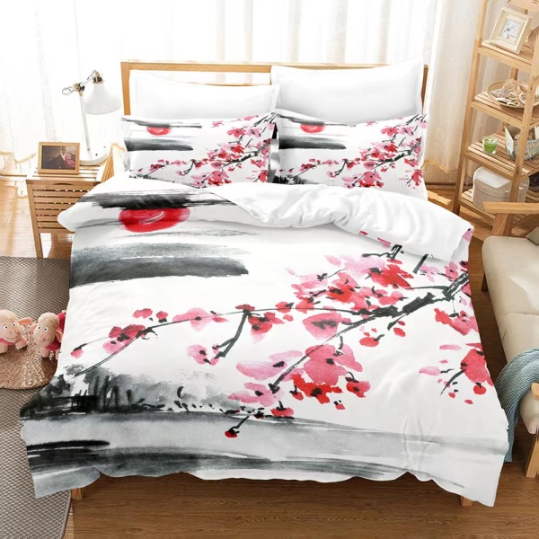 跨境3d数码印花三件套亚马逊春天花卉系列梅花被套床上用品四件套