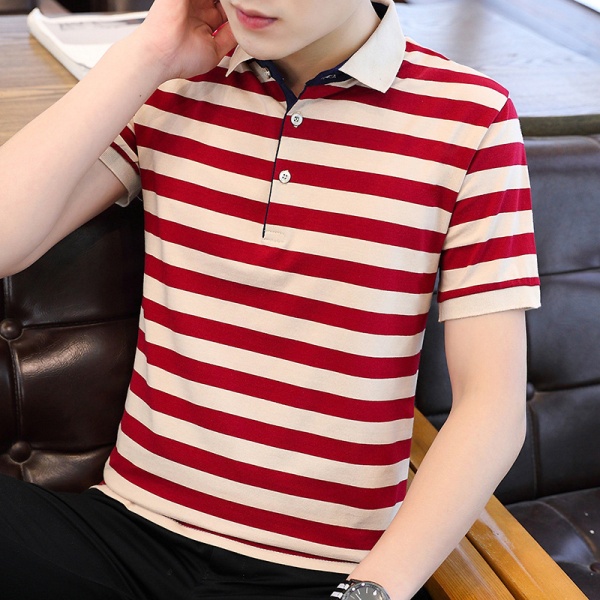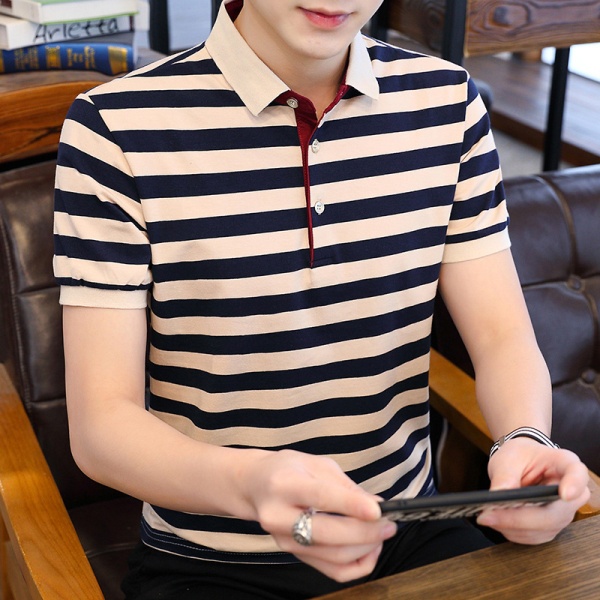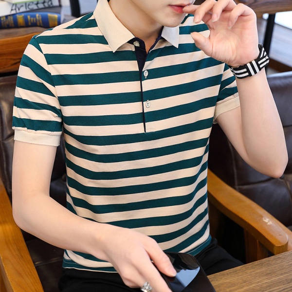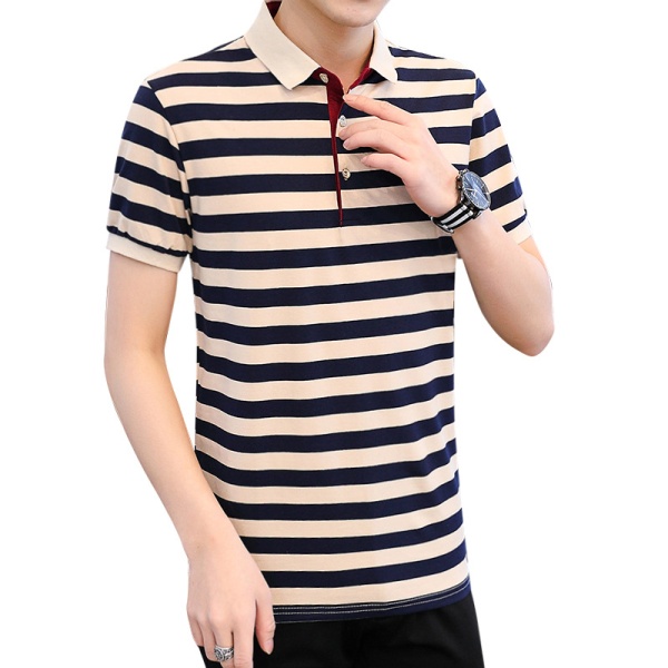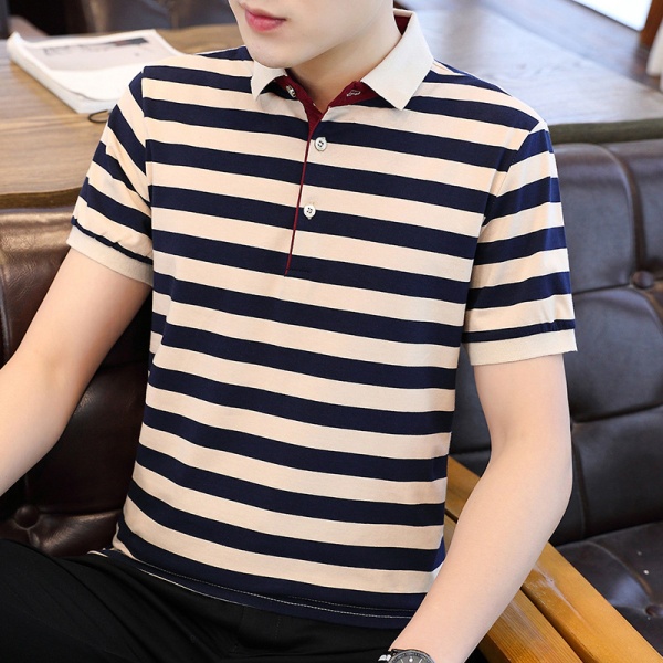 宾杰严选夏季新款男士短袖T恤条纹棉薄款商务翻领男装polo衫男款