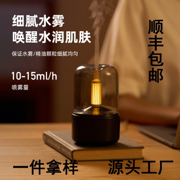 2025新款超声波款仿真烛光香薰机办公室酒店卧室床头柔光加湿器